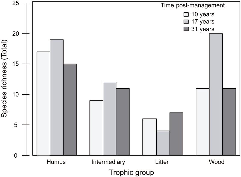 Total termite species richness of each trophic group per time post-management (10, 17, and 31).